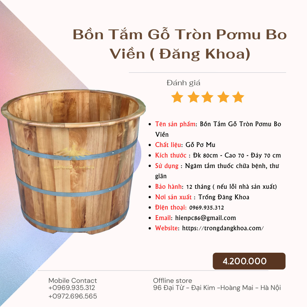 Thay vì phải mua một chiếc bồn xông hơi hoặc thùng tắm ngâm người thì bạn có thể sử dụng bồn tắm gỗ Pơ Mu với kiểu dáng đẹp và thiết kế hấp dẫn. Thành bồn tắm có độ dày nên tới 3cm Giúp cho việc truyền nhiệt ra bên ngoài khó khăn hơn. Bên cạnh đó, Gỗ Pơ Mu có mùi thơm đặc trưng tốt cho sức khỏe, khi hòa quyện cùng với nước ấm nó sẽ tạo ra một loại tinh dầu giúp mang lại cảm giác sảng khoái trong quá trình ngâm tắm.