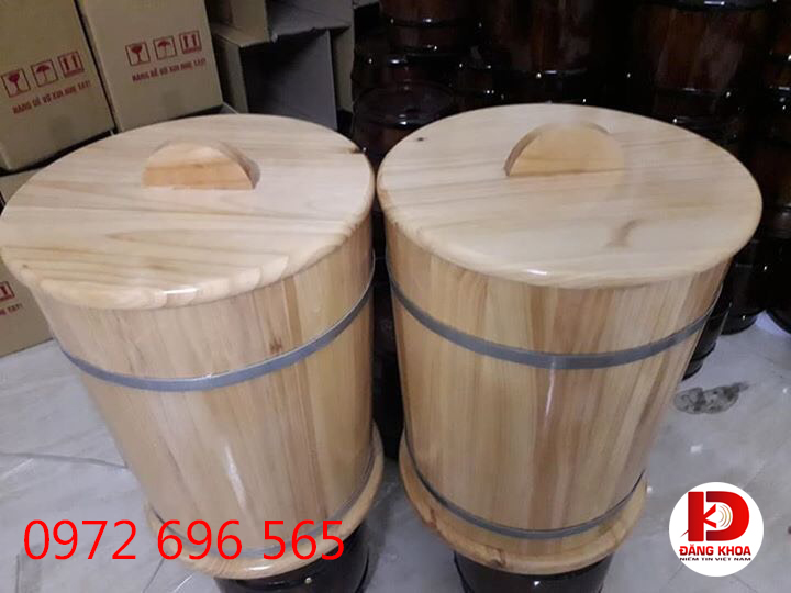 3. Hũ đựng gạo bằng gỗ có dung tích, mẫu mã đa dạng.
