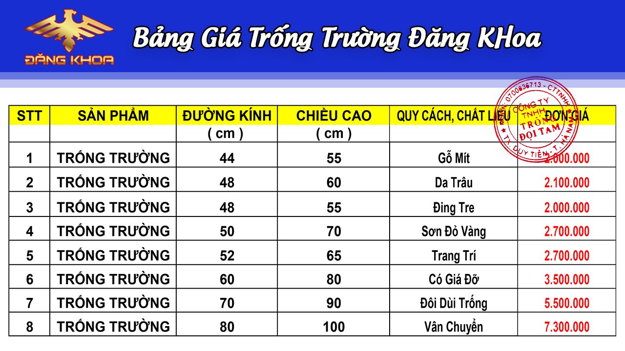BÁO GIÁ TRỐNG TRƯỜNG HỌC